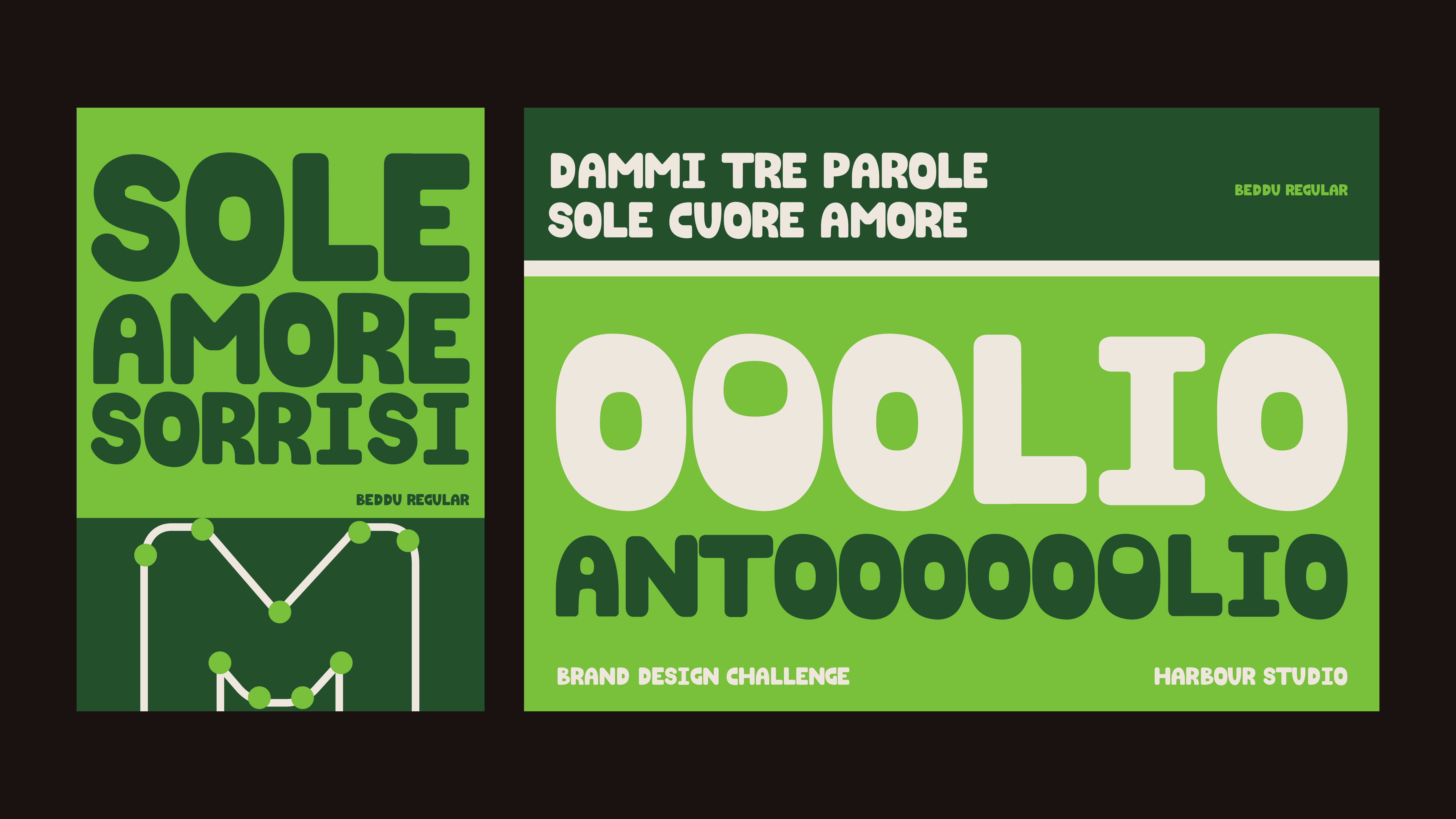 Spinti dall’amore per la cultura italiana e dal brief dal tono pop, abbiamo realizzato un brand per un ipotetico olio d’oliva realizzato in Puglia chiamato “Antolio”, caratterizzato da una simpatica mascotte, un carattere tipografico custom-made, una grafica calorosa ed un packaging design eccentrico ed eclatante. Grazie alle nostre intuizioni, da più di mille partecipanti, siamo riusciti ad arrivare nei top 25 progetti del concorso.