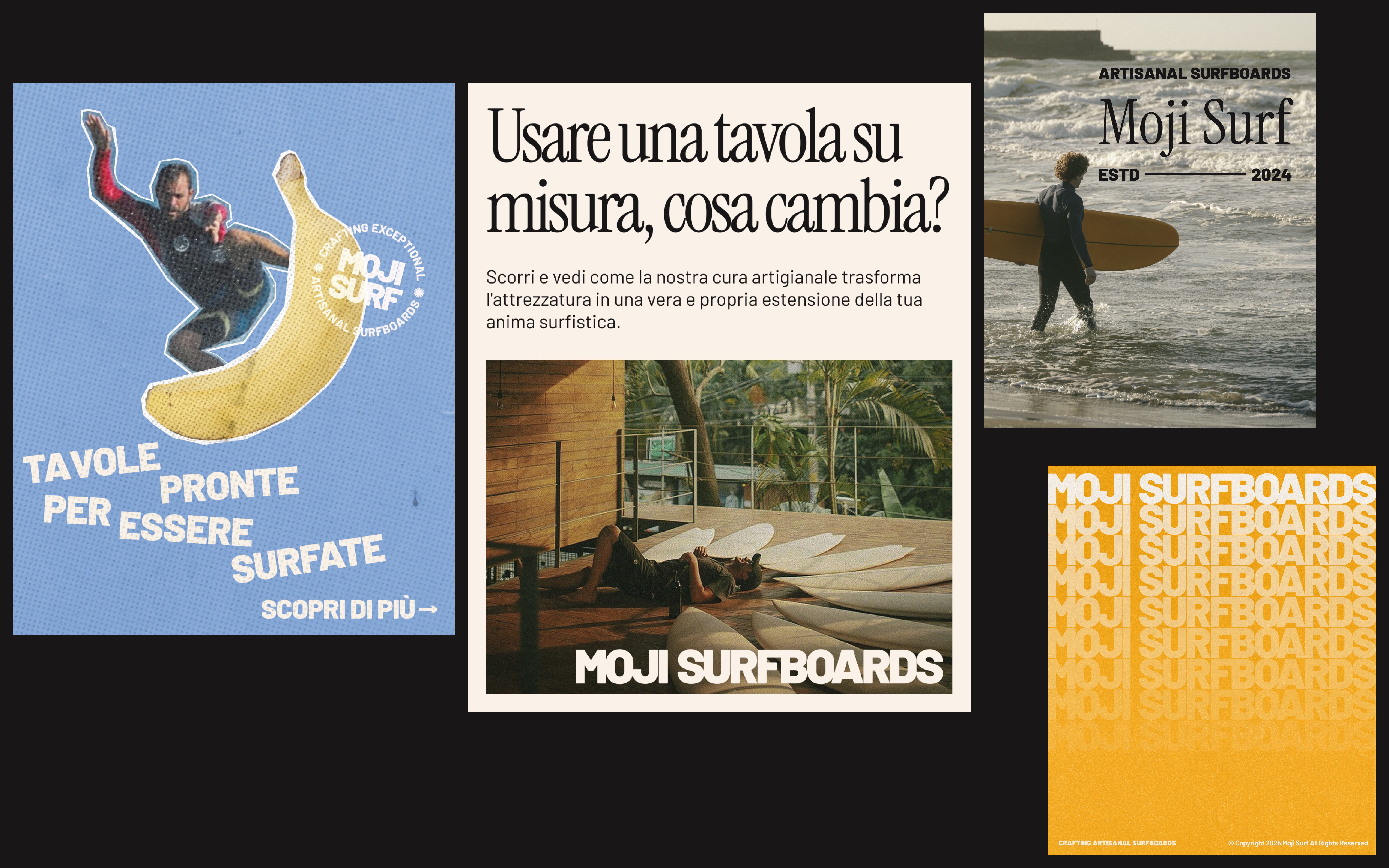 Ci è stato chiesto da Moji Surfboards di revisionare tutta la sua comunicazione, partendo dalla creazione di una brand identity, un sito web con CMS e forms integrati che potesse garantire la migliore User Experience ed un photoshoot che potesse raffigurare in modo professionale le sue tavole da surf artigianali personalizzabili.